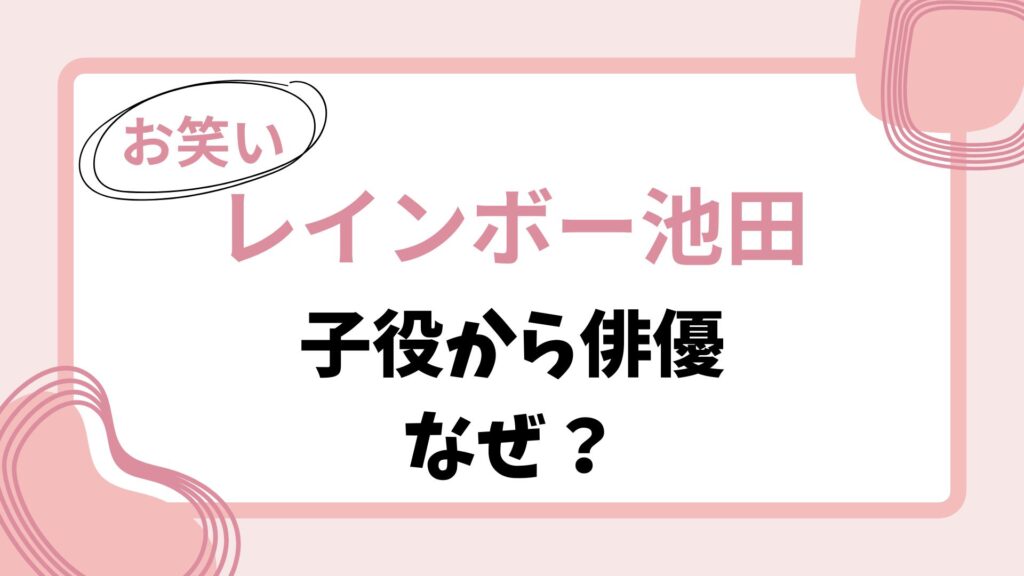 【レインボー池田】過去は子役時代もあった!俳優志望から芸人になった理由とは?も、どうぞお読みください。